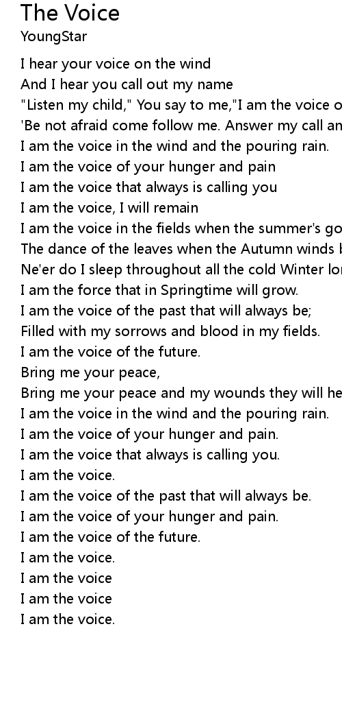 | "Listen my child," You say to me,"I am the voice of your history. | |