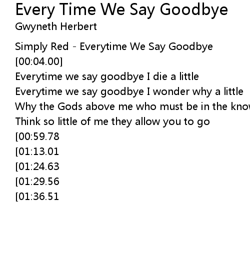 Every Time We Say Goodbye 歌词