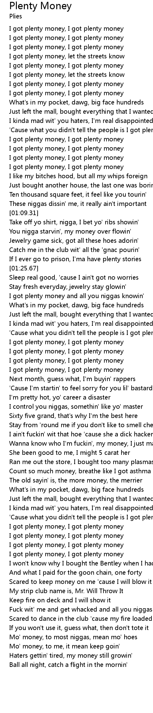 'Cause what you didn't tell the people is I got plenty money |
