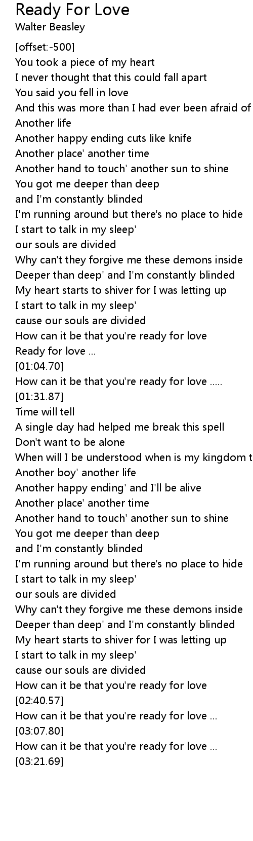 How can it be that you're ready for love ..... |