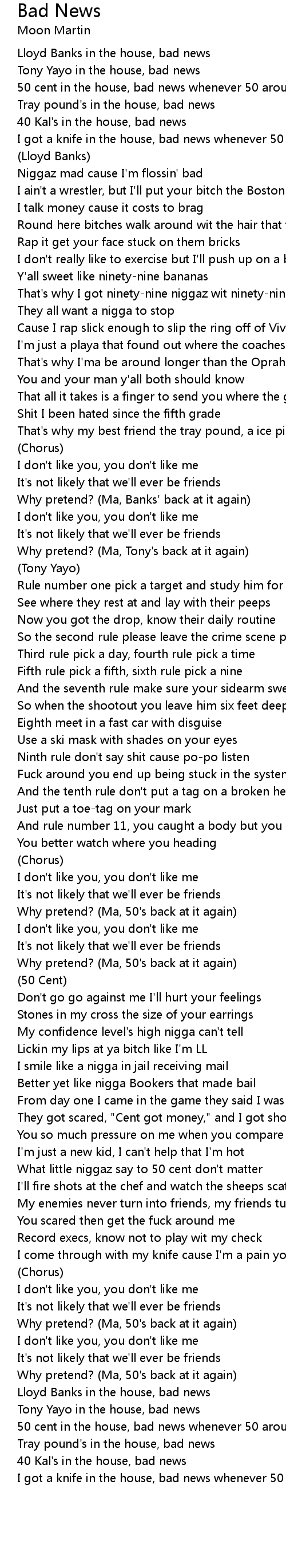 I got a knife in the house, bad news whenever 50 around it's bad news |