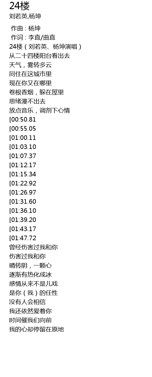 | [00:00.63] | 24楼(刘若英、杨坤演唱) |