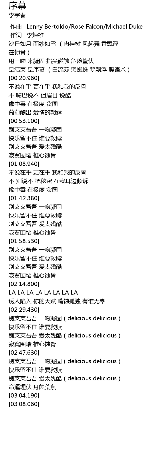 | [02:41.170] | 别支支吾吾 爱太残酷(delicious delicious) |