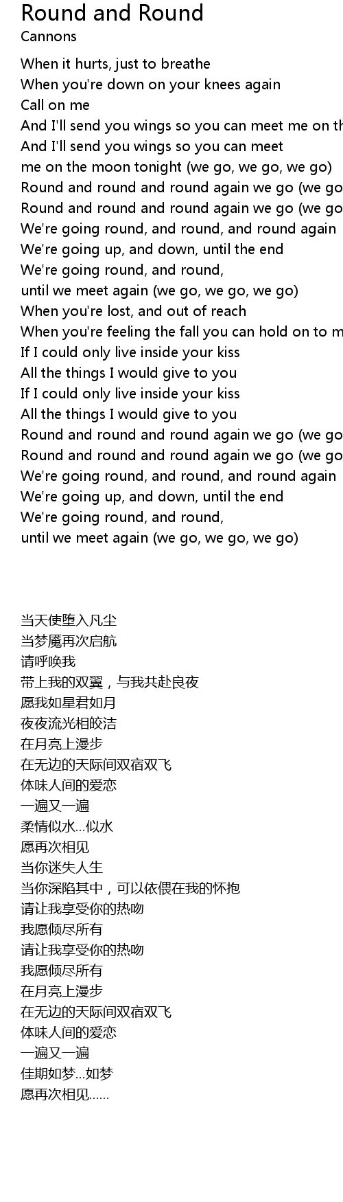 We're going round, and round, |