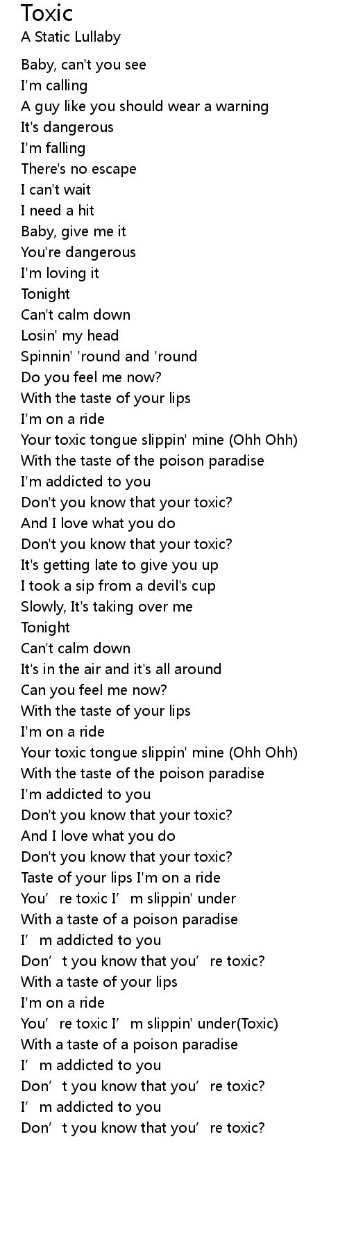 | [02:41.460] | You’re toxic I’m slippin' under |