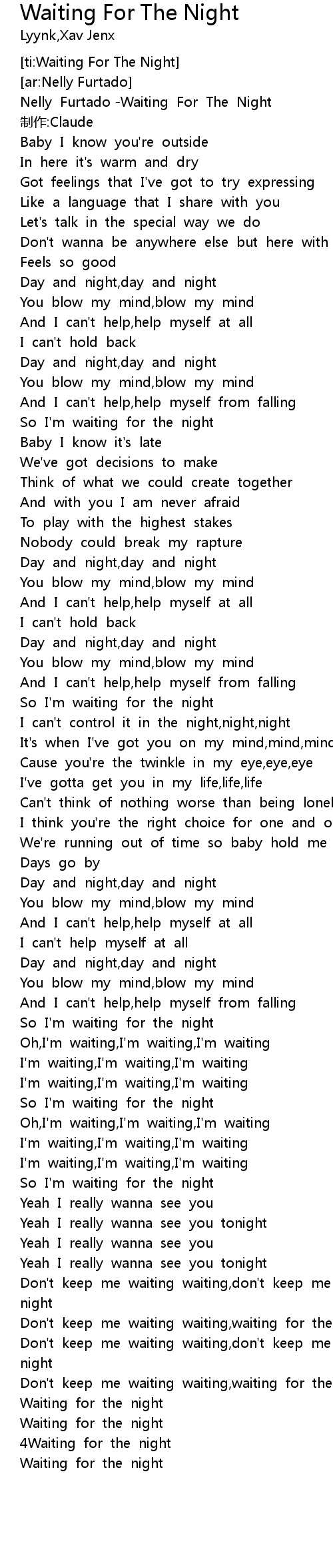 | [00:01.101] | Nelly Furtado Waiting For The Night |