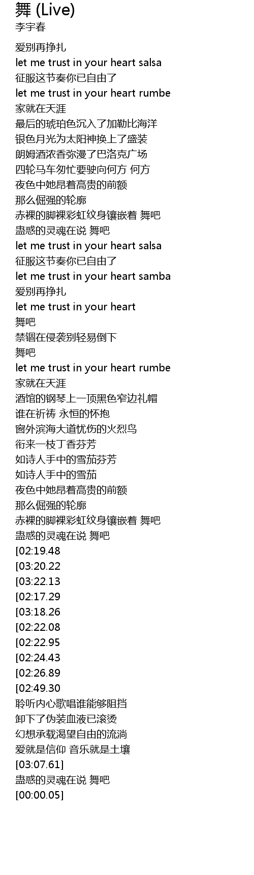 | [02:10.04][02:19.48] | let me trust in your heart salsa |