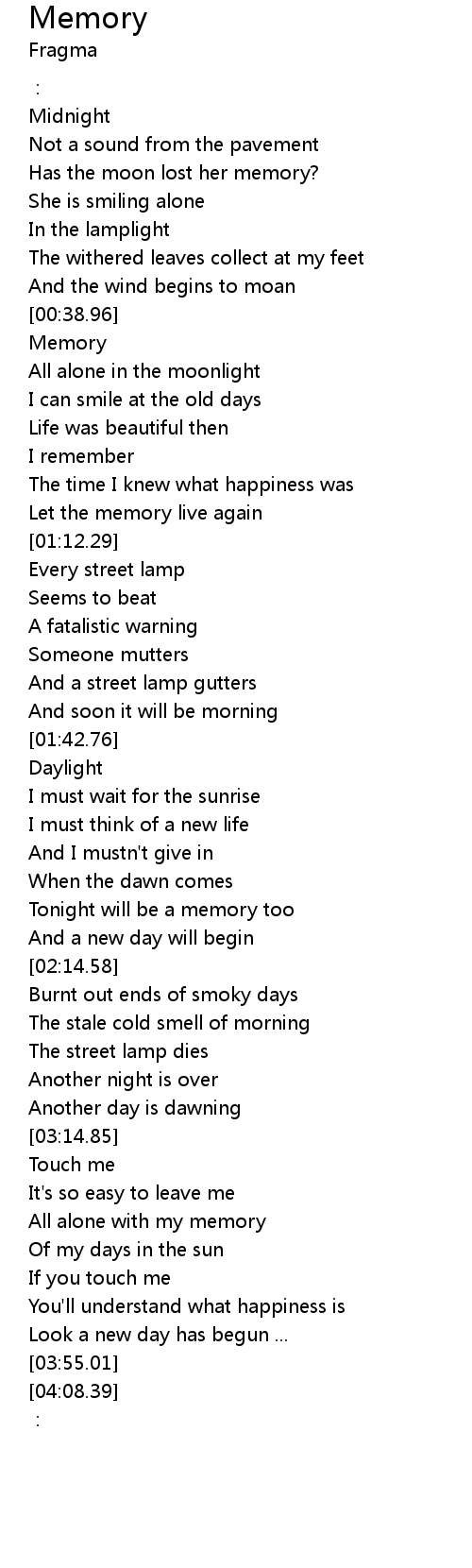 | [00:42.31] | All alone in the moonlight |