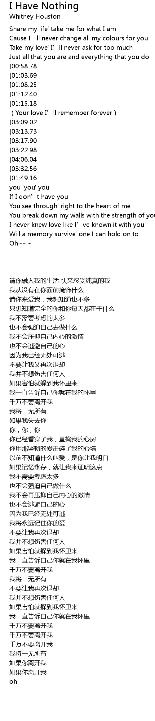 | [04:15.73][03:32.56][01:43.95] | I have nothing' nothing' nothing |