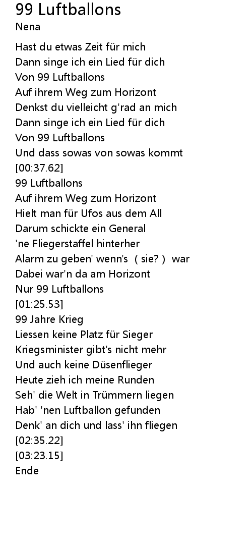 | [02:27.47] | Hab' ' nen Luftballon gefunden |
