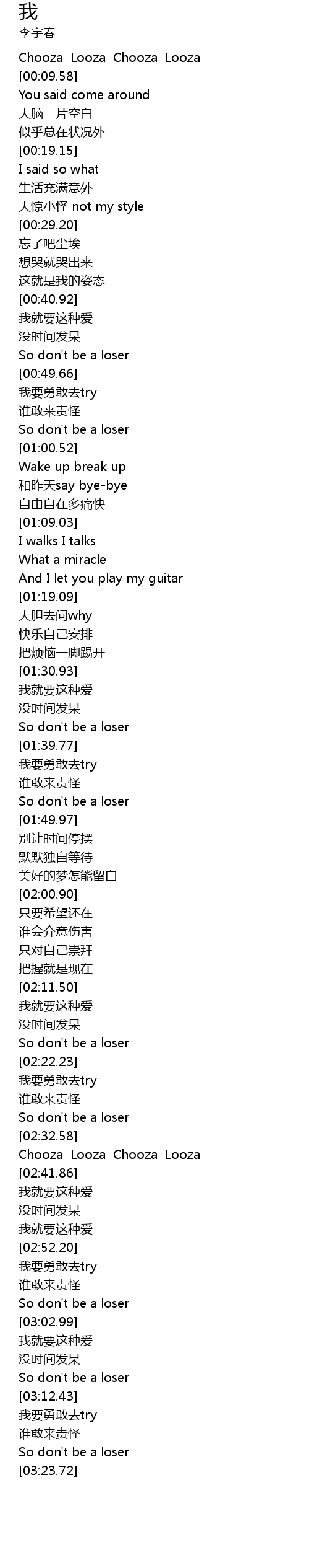 | [03:09.57] | So don' t be a loser |