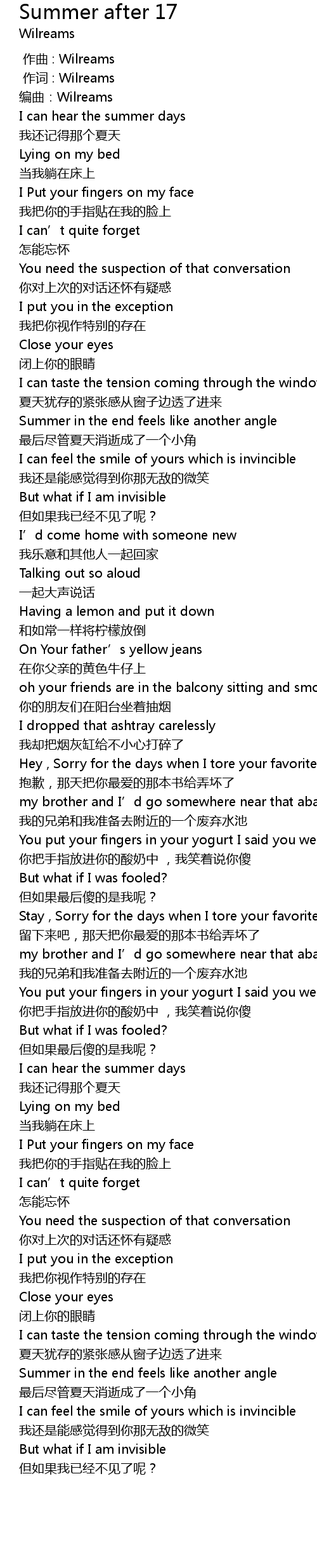 | [00:01.000] | 作词 : Wilreams |