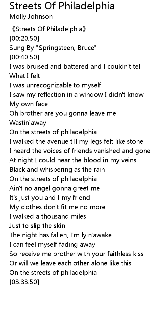 | [00:00.50] | 《Streets Of Philadelphia》 |