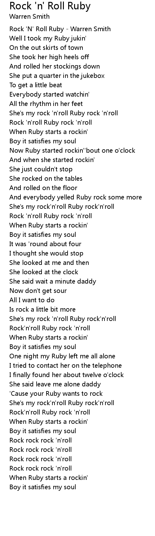 Rock'n'roll Ruby rock 'n'roll |