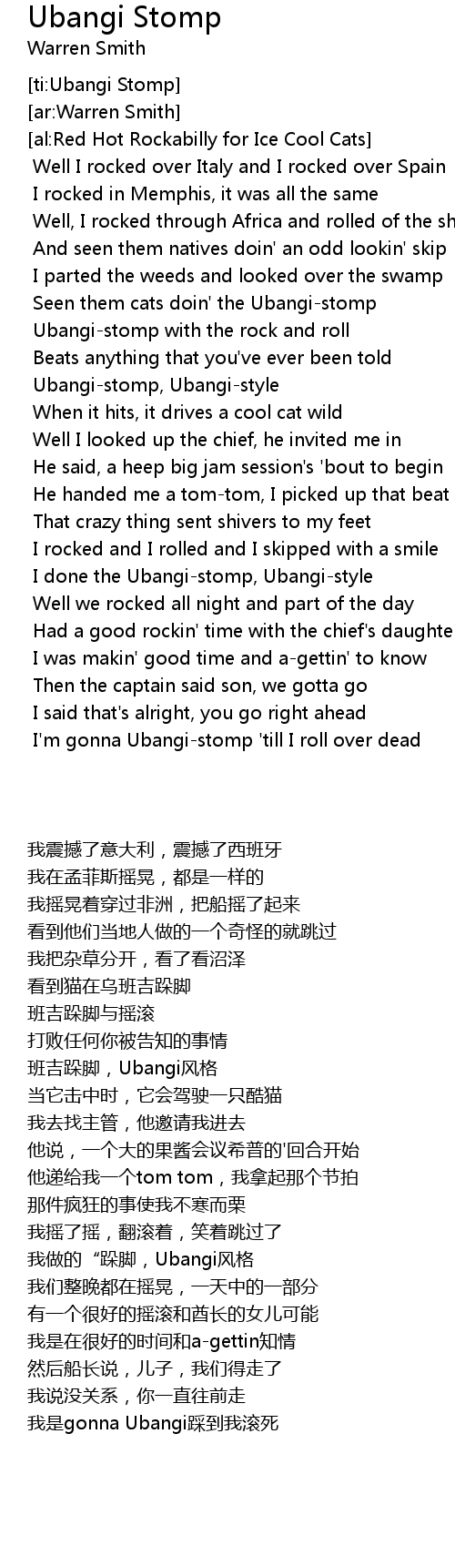 I'm gonna Ubangi-stomp 'till I roll over dead |