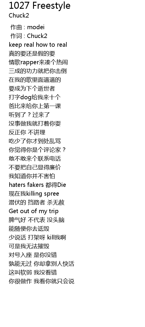 | [00:01.000] | 作词 : Chuck2 |