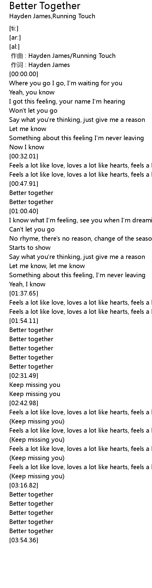 | [02:45.93] | Feels a lot like love, loves a lot like hearts, feels a lot like mine |