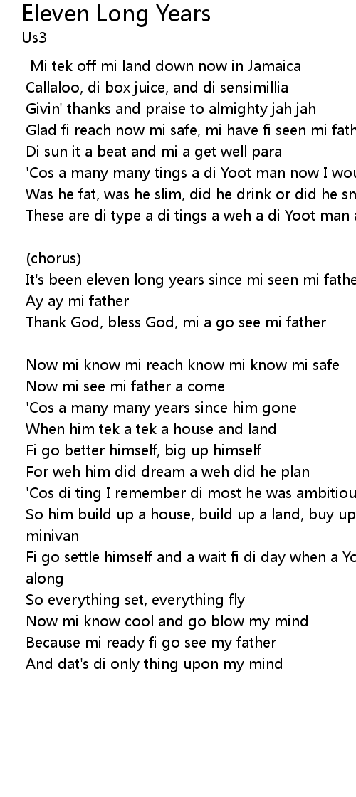 It's been eleven long years since mi seen mi father |