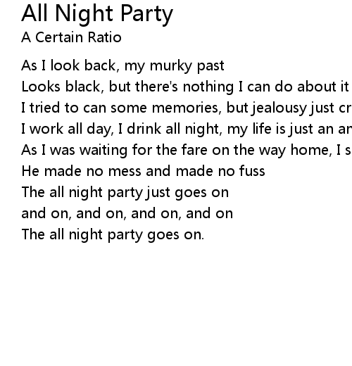 | The all night party just goes on | |