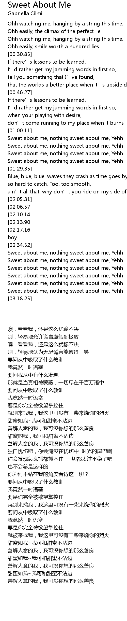 | [02:34.72] | Sweet about me, nothing sweet about me, Yehh |