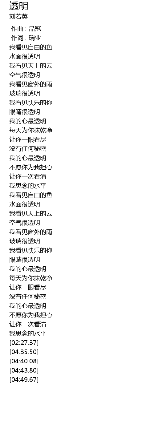 | [00:47.77] | wǒ de xīn zuì tòu míng |