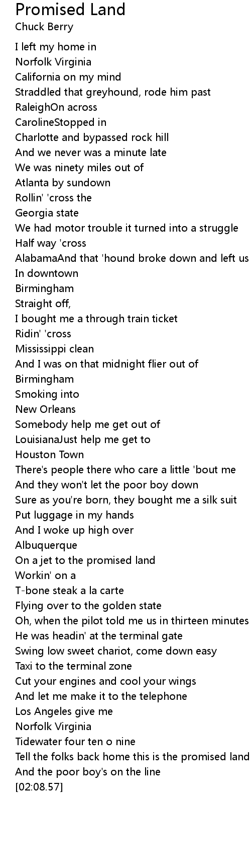 [02:04.03] Tell the folks back home this is the promised land callin'