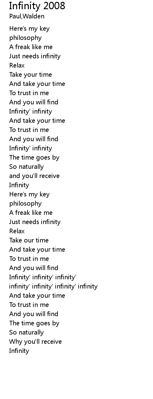 | [02:11.00] | infinity' infinity' infinity' infinity |