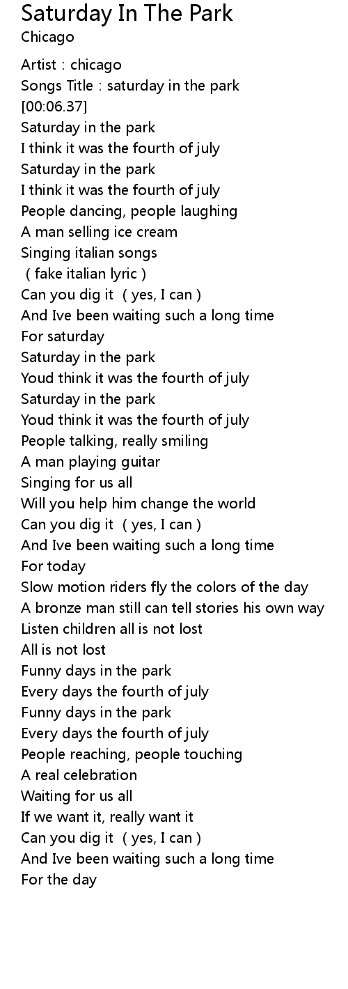 | [00:02.62] | Songs Title: saturday in the park |