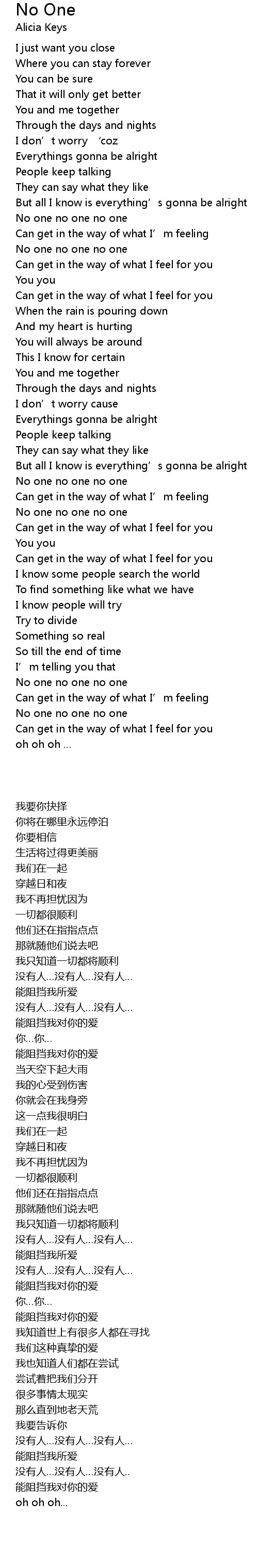 | 歌曲 | No One |