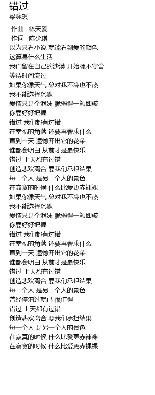 | [02:41.750] | cuo guo wo men dou you guo cuo |