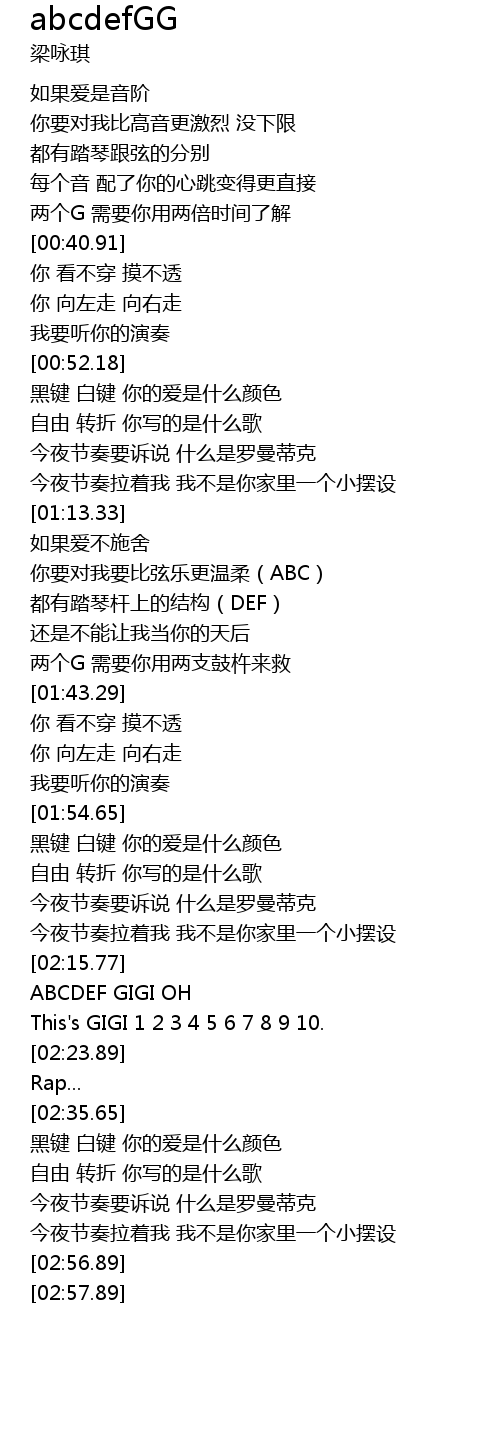 | [02:15.94] | ABCDEF GIGI OH |