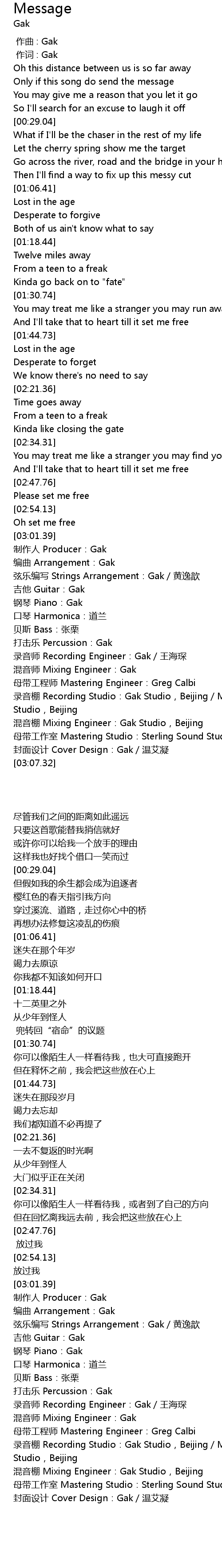 | [03:06.45] | hùn yīn péng Mixing Engineer: Gak Studio, Beijing |