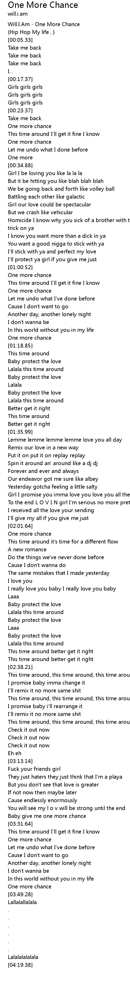 | [00:-1.00] | Will.I.Am - One More Chance |