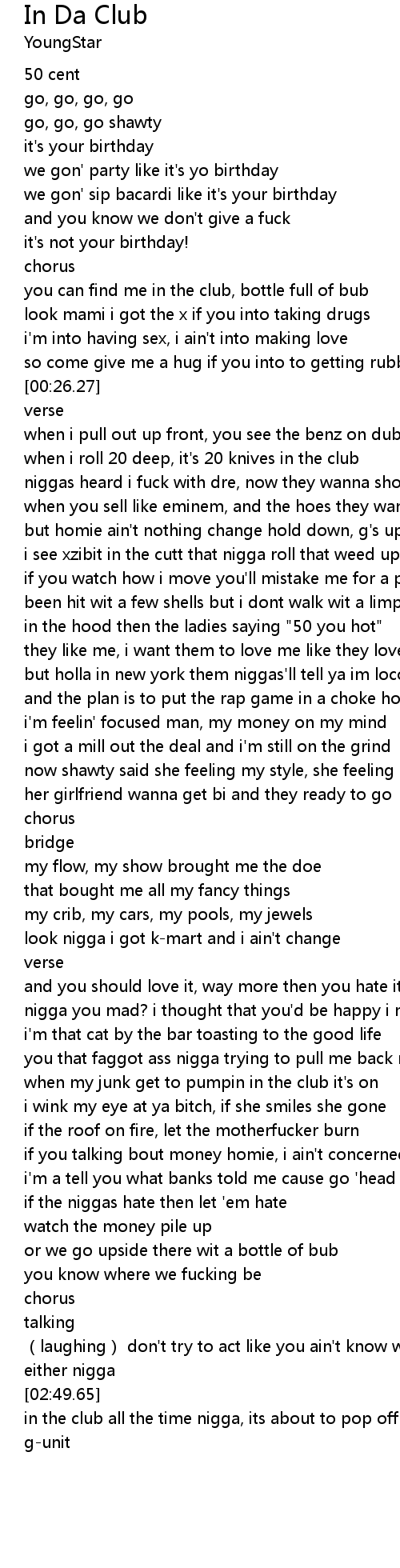 | [02:50.33] | in the club all the time nigga, its about to pop off nigga |