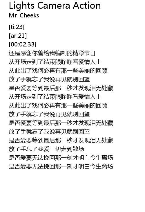 | [00:35.785] | 还是感谢你曾给我编制的精彩节目 |