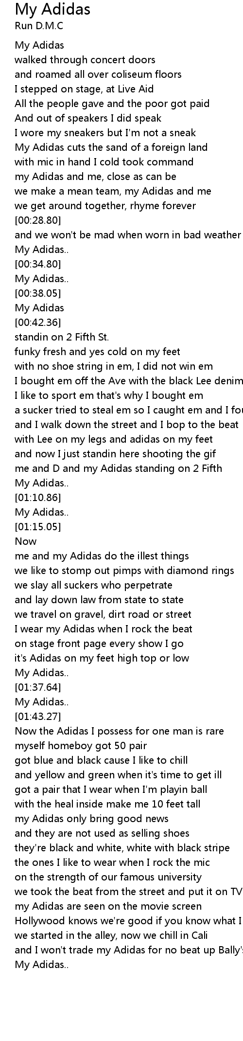 I wear my Adidas when I rock the beat |