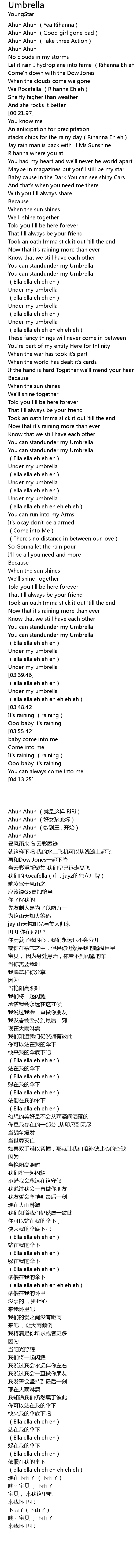 | [03:24.85] | You can standunder my Umbrella |