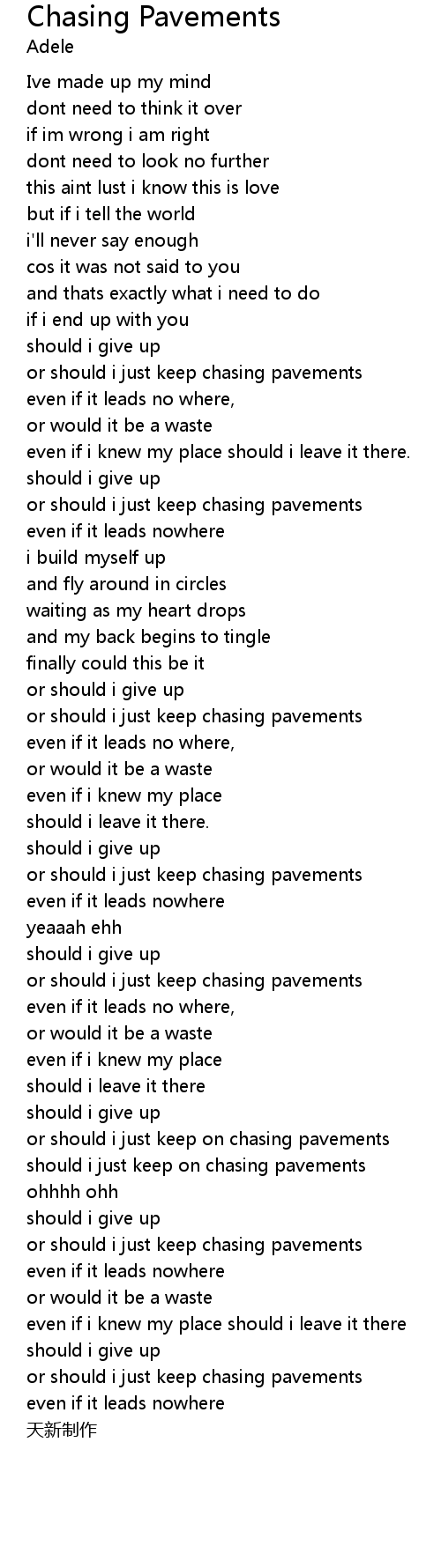 | 歌曲 | Chasing Pavements |
