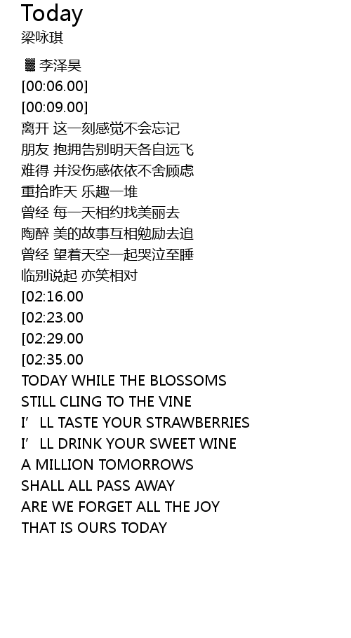 | [01:46.00] | TODAY WHILE THE BLOSSOMS |