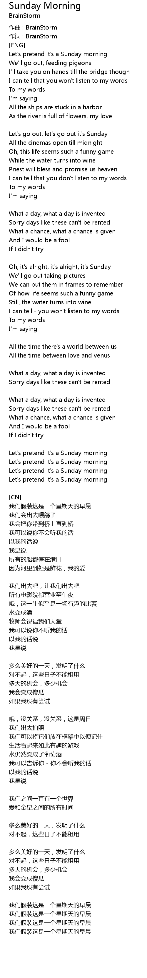 | 歌曲 | Sunday Morning |