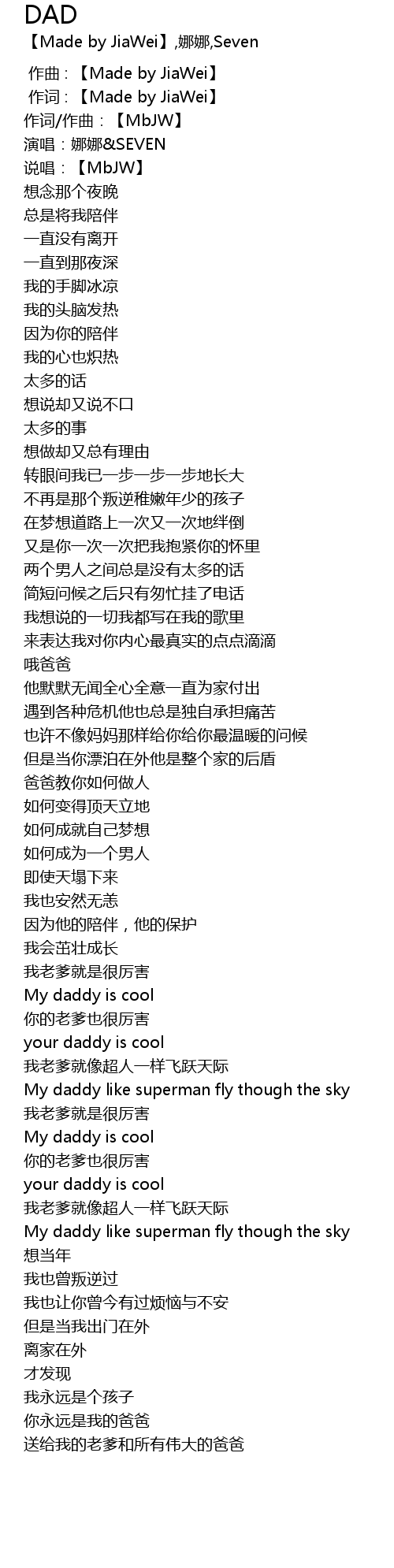 | [02:03.000] | My daddy is cool |