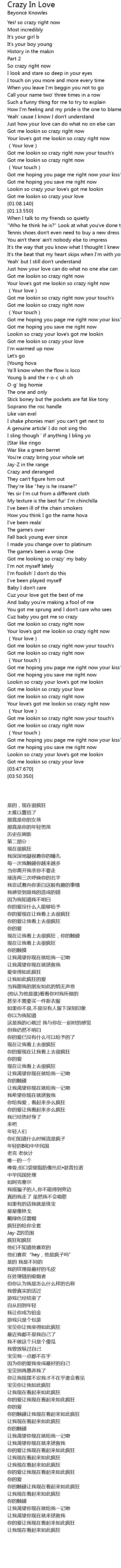 | 歌曲 | Crazy In Love |