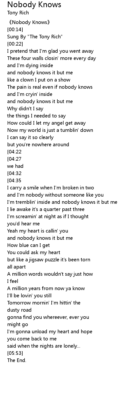 | [00:00] | Nobody Knows |