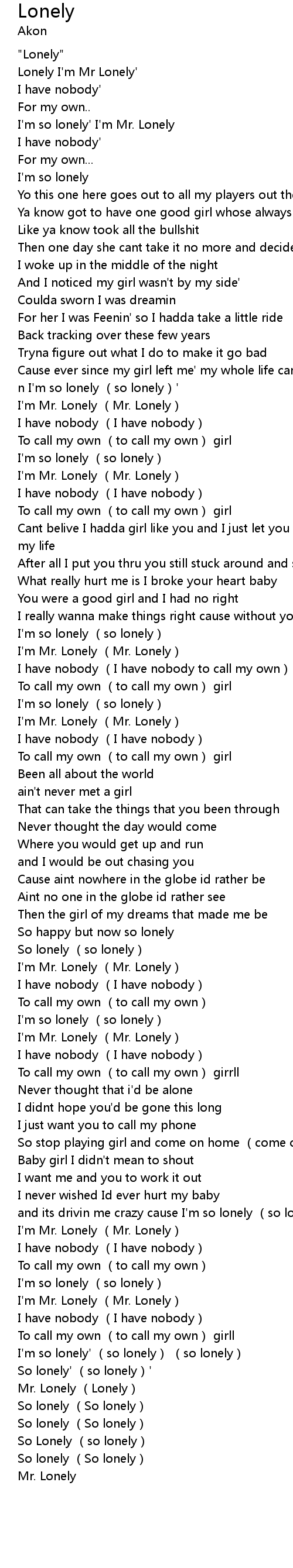 | [00:09.79] | I' m so lonely' I' m Mr. Lonely |