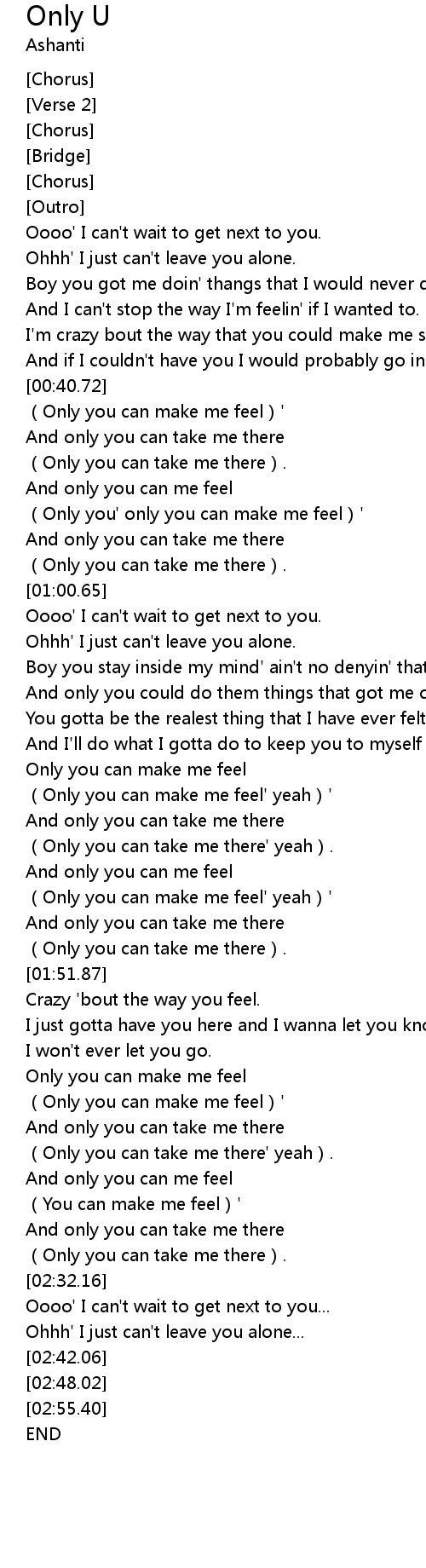 | [01:43.73] | (Only you can make me feel' yeah)' |