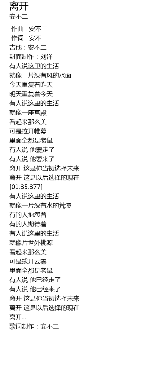 | [03:16.108] | 歌词制作:安不二 |