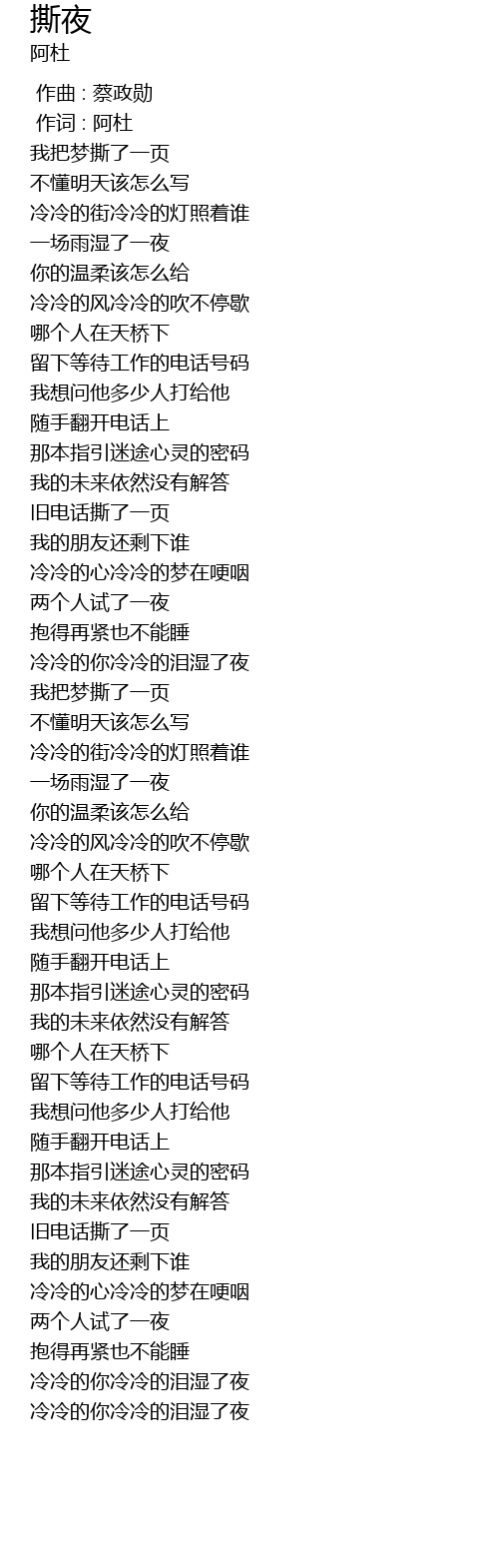 | [04:03.56] | 冷冷的你冷冷的泪湿了夜 |