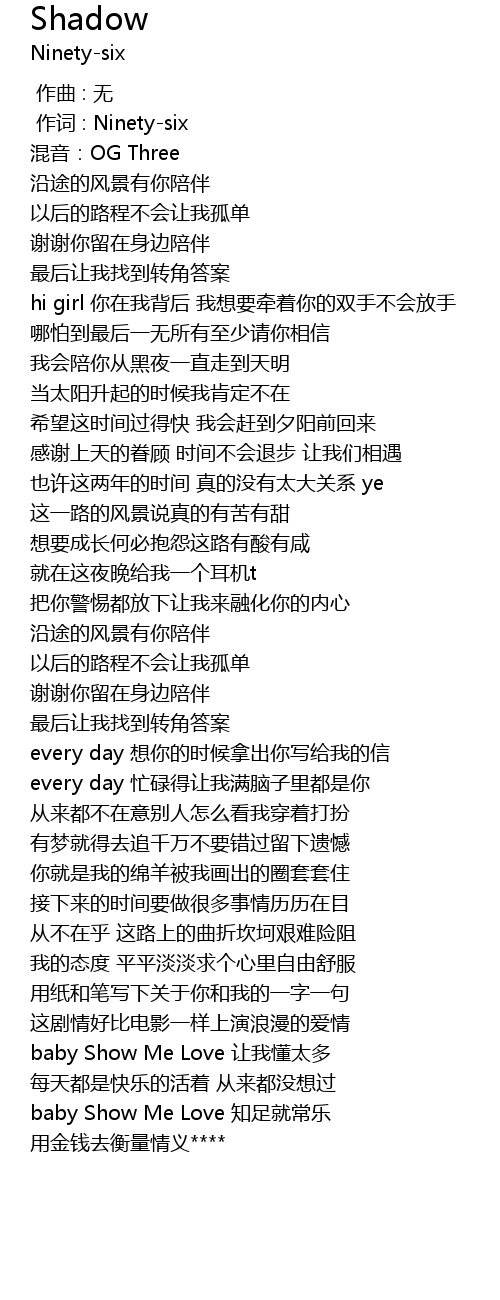 | [00:01.000] | 作词 : Ninety-six |