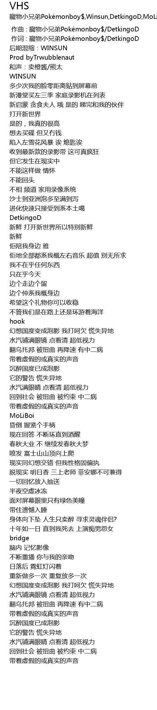 | [00:01.000] | 作词 : 寵物小兄弟Pokémonboy$/DetkingoD |