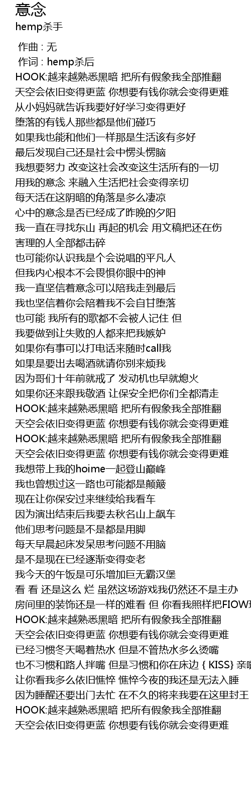 | [03:53.470] | HOOK: yuè lái yuè shú xī hēi àn bǎ suǒ yǒu jiǎ xiàng wǒ quán bù tuī fān tiān kōng huì yī jiù biàn de gèng lán nǐ xiǎng yào yǒu qián nǐ jiù huì biàn de gèng nán |